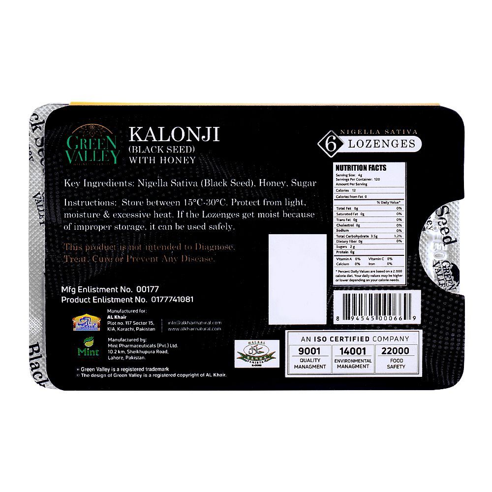 Generic Name: Black Seed (Nigella Sativa) + Honey, Strength: Varies, Pack: 6 Lozenges