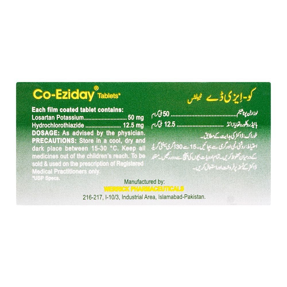 Uses Co-Eziday Tablet (Irbesartan + Hydrochlorothiazide) is a combination medicine used to treat high blood pressure. It contains an angiotensin receptor blocker and a diuretic to help lower blood pressure effectively. The 50mg strength is a lower dose. Side Effects Side effects may include dizziness, fatigue, and headache. Caution Not for use during pregnancy. Regular…