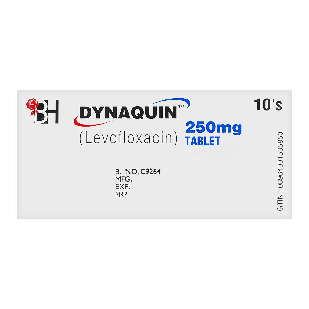 Dynaquin Tablet (Ciprofloxacin) is a quinolone antibiotic used to treat a wide range of bacterial infections. The 250mg strength is a lower dose for less severe infections or as directed by a doctor.